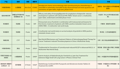 在头颈肿瘤、乳腺癌、肺癌、前列腺癌等多个疾病领域,卡瑞利珠单抗、阿得贝利单抗、吡咯替尼、氟唑帕利、法米替尼、醋酸阿比特龙片(II)等抗肿瘤新药相关研究一共入选了1项简短口头报告、4项壁报展示和1项电子壁报,彰显了AG亚游医药强劲的研发实力。此外,AG亚游医药自主研发的血小板生成素受体激动剂(TPO-RA)海曲泊帕在肿瘤治疗所致血小板减少领域、新一代长效G-CSF产品硫培非格司亭在肿瘤治疗所致中性粒细胞减少症领域各入选1项壁报展示。