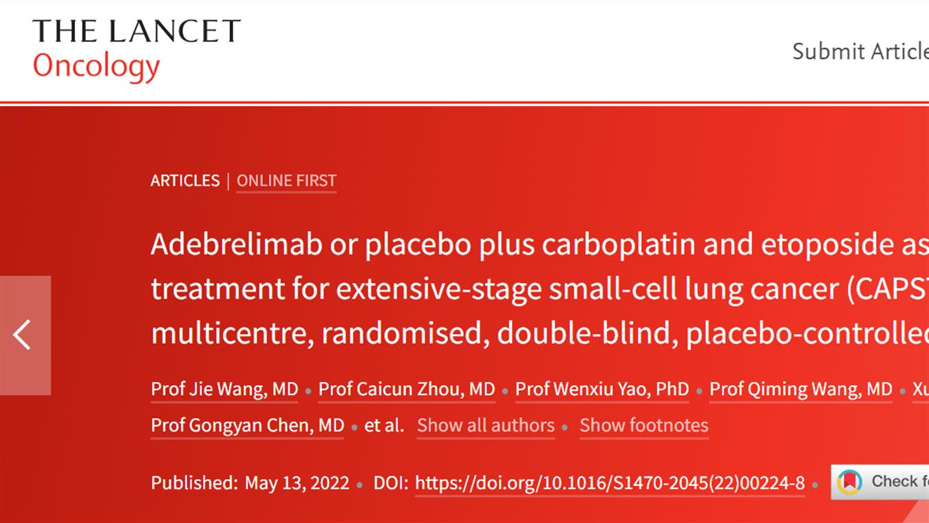 AG亚游卡瑞利珠单抗联合阿帕替尼最新研究成果荣登《柳叶刀·肿瘤》